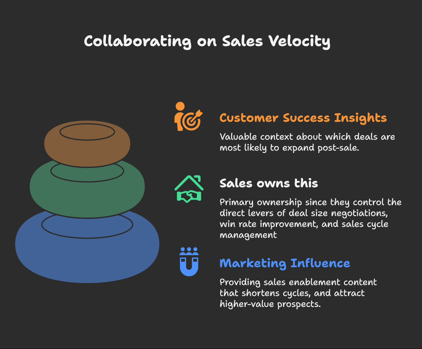 - Sales takes primary ownership since they control the direct levers of deal size negotiations, win rate improvement, and sales cycle management.